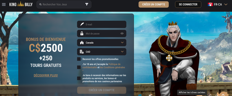 Tout ceci vous est proposé dans un climat de jeu sécurisé. Vous avez une assistance 24 h/24. Les moyens de paiement proposés prennent en compte plusieurs cryptos populaires. En matière de bonus, King Billy vous reçoit avec un pack allant jusqu'à 2500 € + 250 tours gratuits. Recevez entre autres :